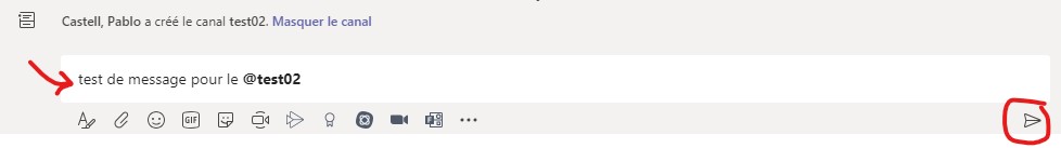 Utiliser @ et le nom de votre canal pour alerter tous les membres de votre publication. Exemple : @test02.