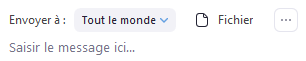 Le clavardage entre tous les étudiant·es est possible pendant les réunions. Il permet d’envoyer des messages à l’ensemble du groupe ou de façon privée. La fonctionnalité Discussion permet aussi le partage des fichiers pendant la rencontre.